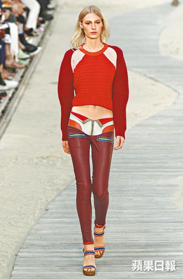 新裝花了不少心思在用料上,着力以多元素的high-tech衣料營造摩登觸覺,如橡膠黏合皮革、color-blocked scuba sweater。