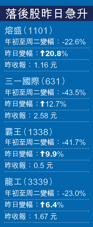 【本報訊】三中全會改革力度意外強勁,中資股一周內由地獄衝上天堂,基金一時反應不及持貨不足,惟有湧向落後股尋寶,今年以來股價積弱的熔盛(1101)昨狂飆兩成,三一(631)亦漲13%。本報訪問多名基金經理均表示業界持貨不足,普遍預期三中概念股升勢有餘未盡。