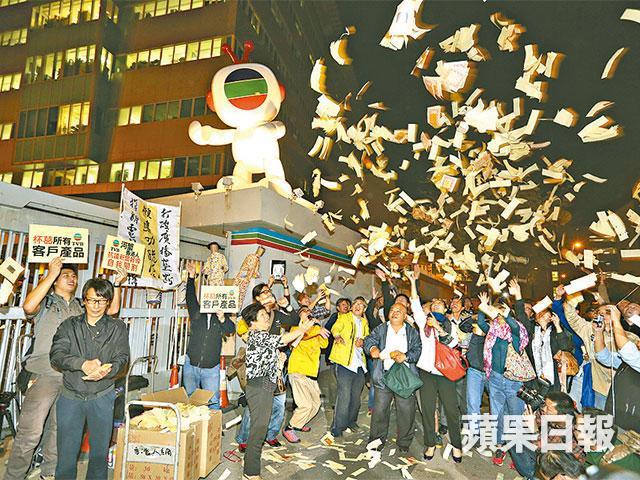【本報訊】觀眾沒有選擇,電視沒有星輝,萬千市民熄機,以黑屏幕控訴電視霸權。全港熄電視行動報捷,無綫《萬千星輝賀台慶》錄得29點收視,比去年跌5點,即流失逾32萬觀眾,創16年來歷史新低。無綫死撐滿意收視,廣告商卻抽起廣告。網民要再下一城,持續熄電視,發起下月在《歡樂滿東華》和《萬千星輝頒獎禮》繼續熄機,誓擊倒慣性收視,拒一台獨大。