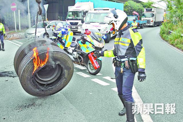 未幾,一輛消防車駛經現場,發現該組甩轆正冒煙,於是通知警員到場指揮交通,同時召來拖車,20分鐘後拖車將該輪胎吊起,只見地上瀝青受熱熔解,可見熱力驚人,其間該組車胎被吊起時疑遇風吹着火頭,車胎冒出熊熊大火。拖車工人驚見甩轆起火,立即把它放回地上,警員連忙取來滅火筒撲救,約兩分鐘將火救熄,事後再由拖車運走,沒人受傷,受事件影響,現場交通一度受阻。