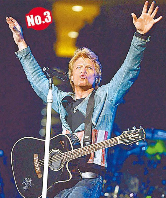 至於美國搖滾樂隊Bon Jovi成為最高排名的男士代表,賺7,900萬美元(約6.1億港元)排第三。鄉謠歌手Toby Keith因為百足咁多爪,憑其音樂及餐廳等業務賺6,500萬美元(約5.1億港元)排第四,而去年冠軍美國Hip Hop教父Dr. Dre就急跌到第二十位,僅賺4千萬美元(約3.1億港元)。