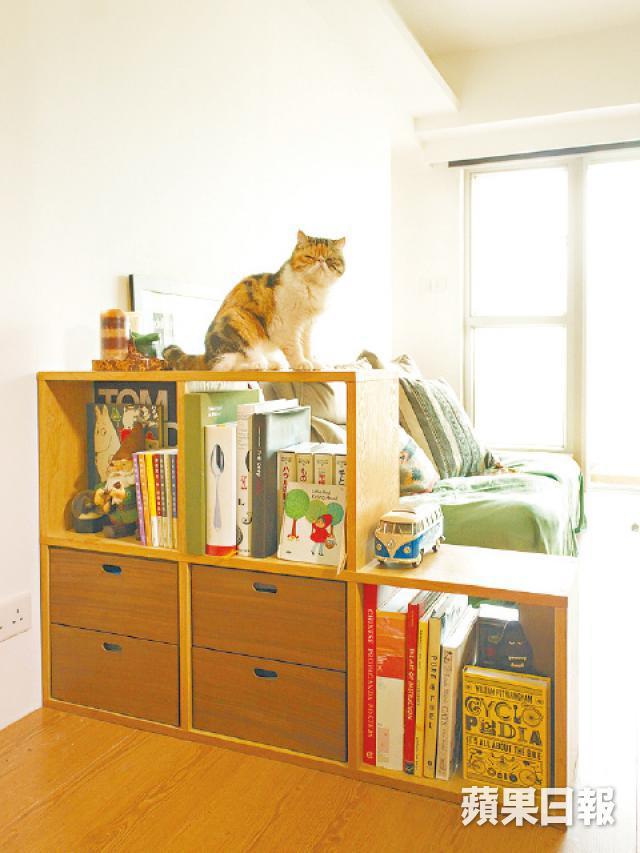 除了「人貓共用」的傢俬,亦有貓主在選購家具時特地為愛貓着想。家住大圍名城、養了兩隻貓咪的Gertrude說︰「貓咪很喜歡跳來跳去,我會選矮身的家具,之前試過因牠跳不上家具而差點跌下來。」她選的是MUJI的矮身沙發,更在沙發上蓋布。「我一定不會揀皮沙發或粗針織的沙發,因為很易被抓破;而又因貓咪曾經在沙發撒尿,故之後在沙發蓋上布,方便清潔。」家具以外,她亦不會選擇細小及膠製的擺設,以免貓咪咬爛而吞下。細看之下更發現在睡房門加設有小小的「貓門」,當房門關上時,兩隻愛貓亦可出入自如,體現Gertrude對貓貓的體貼。