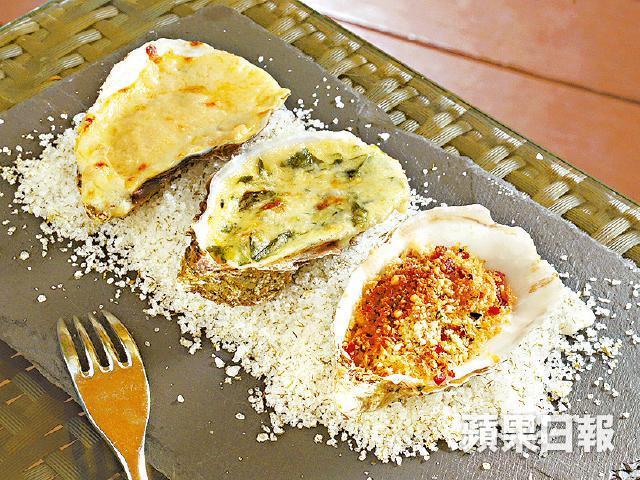 Baked Oysters 3 Ways:Isigny生蠔配上三種不同醬汁烤香,其中以白汁混和乳酪的Mornay與生蠔出奇地夾!$238/a