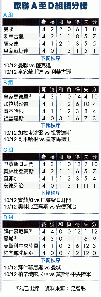 在一眾歐洲豪門當中,祖雲達斯的形勢最危急,排在歐聯B組包尾,周三迎戰哥本哈根,非勝不可。祖記攻力一般,以防守見稱,即使哥本哈根實力弱,但祖記未必炒得到。今仗「入球大細」中位數開到3.5球,一於博「細」。(球賽編號:星期三4;有線62及202台明日3:45am直播)