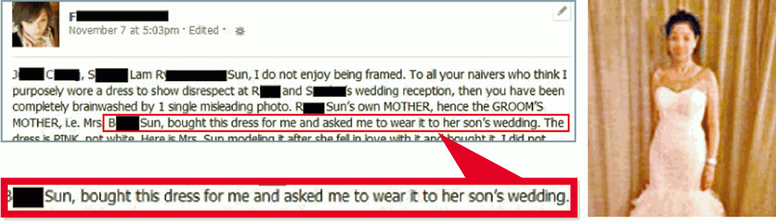 孫太昨透過友人向本報澄清:「仔同新抱好好,好喜歡佢,條裙係我舊裙,借畀佢(活希兒)着,唔知佢乜場合着,條裙同新抱嗰條唔一樣,佢嗰條係訂做,唔同色。」孫太認活希兒是契女,透露因今次facebook風波,活希兒已被律師樓勸喻離職,亦否認她坐主家席:「嗰晚係佢係舞台邊睇住新人跳舞,孫生(孫大倫)話企喺度攰,叫佢坐。」