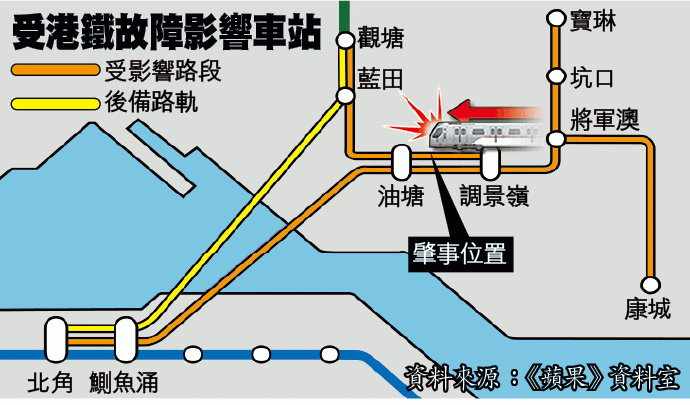 【本報訊】啟用11年的港鐵將軍澳綫昨發生歷來最嚴重事故,一部國產列車由調景嶺站駛往油塘站時,撞及一段鬆脫高壓電纜,目擊者稱有四響爆炸聲及火球冒出,事件令管道內兩部列車失去動力,數百名乘客要沿路軌分別步行往油塘及調景嶺站月台,幸無人受傷。意外斬斷將軍澳交通命脈,將軍澳綫列車停駛近五小時,是港鐵22年來最嚴重、封站時間最長的事故,但港鐵交代事故含糊其辭,惹人不滿。
