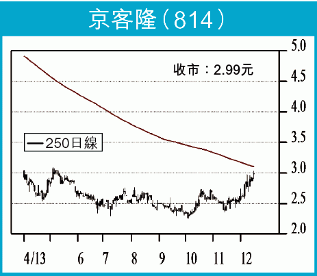 圖靚加埋估值低殘,相信係買入京客隆嘅原因。近兩、三年呢隻股已經跌咗七成,股價往往受制於250日線,目前250日線只係3.1元左右,呢個位同時係雙底頸線,向上突破就一天光晒。雖然長線未確認轉強,但晉佳仍建議分段吸納呢隻股,如果真係重返強勢,中長線至少上番4.5元。