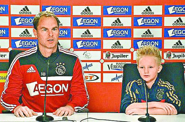 荷甲阿積士最近為一位8歲病童Jay Jay(右)做好事,呢位小朋友患咗腸道不治之症,喺阿積士基金會協助下為佢整咗一段約分半鐘嘅短片,片中講Jay Jay大顯球技,主帥法蘭迪保亞(左)即刻決定簽佢成為阿積士一隊球員,喺主場對NAC着9號波衫落場,滿足呢位小球迷嘅夢想。