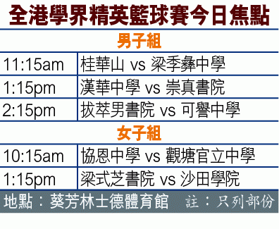 【本報訊】一隊是李慧詩(Sarah)母校梁式芝書院,一隊是前港隊代表翁金驊母校漢華,兩軍昨日在林士德體育館舉行的全港學界精英籃球賽中皆晉身今日的次圈。梁式芝中六生隊長董少荺說:「Sarah為我們學校樹立一個成功例子,是我們每個梁式芝學生努力的動力。」