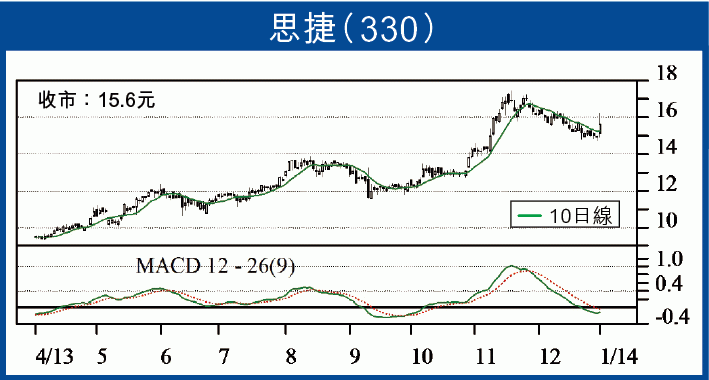 作中線部署的話,應有更佳的入貨位置,現時毋須心急,短炒的話,宜小心控制注碼。思捷環球(330)昨日一度升逾8%,收市仍升4.4%,收報15.60元,成交1,315萬股,短線調整結束,可考慮短炒。