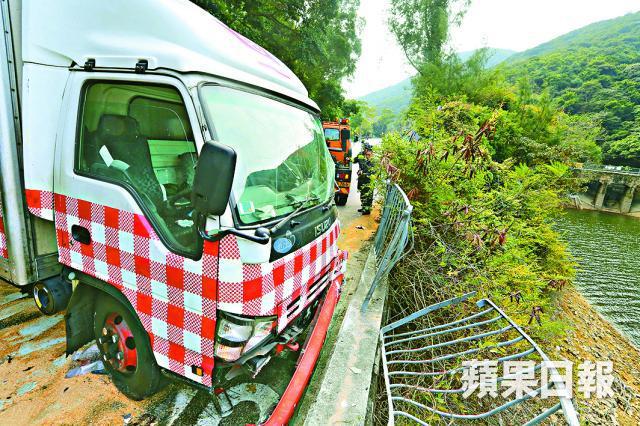 【南 區】【本報訊】昨晨9時許,港島大潭道發生貨車險衝落水塘驚險意外。一輛運送麵包貨車,沿大潭道往柴灣方向行駛,駛至近大潭水塘道時失控,撞毀約三米路邊鐵欄向右翻側,橫亙於來回行車線,險告墮下水塘,35歲姓曾司機及32歲姓張跟車手腳輕傷。警員到場封鎖現場調查,兩小時後貨車扶正拖走,交通才恢復正常。封路期間居住赤柱村民要步行半小時回家。