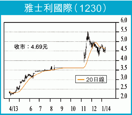 除咗個別半新股升極都有之外,開始見到個別非炒作概念股份有轉強迹象,噚日就有美國概念股同奶股,創科(669)、敏華(1999)、彩星玩具(869)呢幾隻主攻歐美市場嘅股份都似想破頂,配合基本因素理想,要博一成至兩成回報似乎唔難。至於奶股方面,合生元(1112)股價喺高位輕微上傾,至於蒙牛(2319)噚日升2%都似想破頂,佢個仔雅士利(1230)最近一個月喺4.5元附近試咗兩次底,相信整固已經完成,噚日升3.8%至4.69元,高過3.5元嘅蒙牛全購價、淡馬錫厚樸入場價只有34%,以蒙牛嘅眼光,晉佳唔相信呢個價冇上升空間。