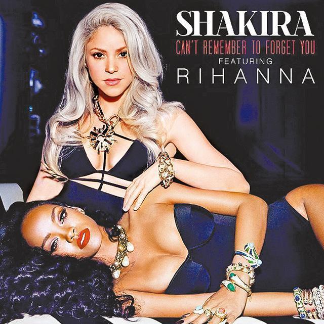 此外,Rihanna最近已與哥倫比亞女歌手Shakira合作推出單曲《Can't Remember To Forget You》,二人齊穿上惹火泳裝拍攝封面照,Rihanna躺在Shakira的大腿上,整個畫面老套得來也算性感誘人。