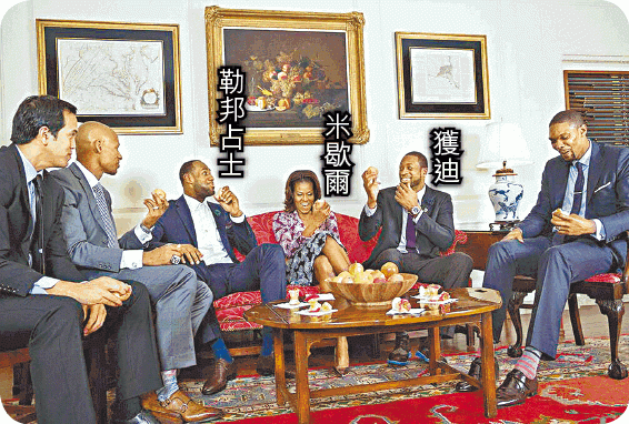 總統雖然貴人事忙,但似乎對熱火眾將嘅消息都好靈通;好似熱火後衞獲迪早前求婚成功,不過再被爆有私生子,獲迪事後就自爆,奧巴馬教咗佢幾招點樣維繫婚姻,當然佢就唔會喺公開場合講出嚟。大合照時奧巴馬仲講笑話,一眾隊友好快手擺好姿勢,唔係後衞查米斯又要捱鬧,因為早前有傳查米斯俾勒邦占士等大佬針對,有乜問題都被視為罪人而要捱鬧。