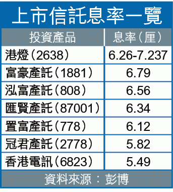 收益率與合訂單位價格成反比關係,若派息不變,單位價格升,即收益率會跌。以匯賢(87001)計,收益率6.34厘,過去一年價格累跌7.7%,收息不夠抵銷跌價。
