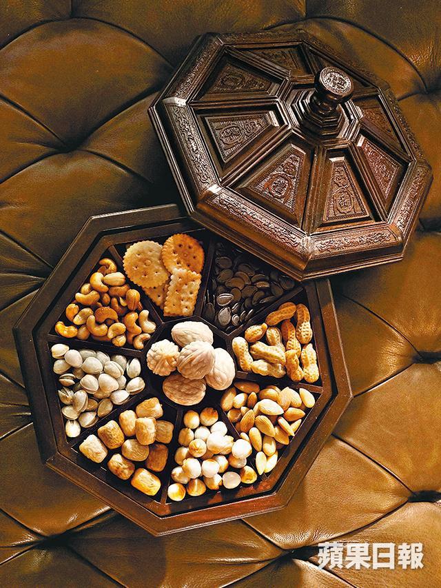 全盒,正寫為「攢盒」,「攢」有聚的意思,正好與農曆新年一家人聚在一起之意異曲同工。傳統中國人過年家家有全盒,並藉盒內食物把祝福傳遞給客人,故全盒背負着重大意義:卓能集團主席趙世曾的全盒,竟是清朝的玉器古董;大美人鄺美雲的「包羅萬有」全盒,內放翡翠瓜子、翡翠花生,不能吃卻是視覺盛宴;崇盟興業集團董事李蔚盈的意大利銀器全盒,如她一樣優雅……原來,全盒一如其主人,散發着個人的獨有品味。