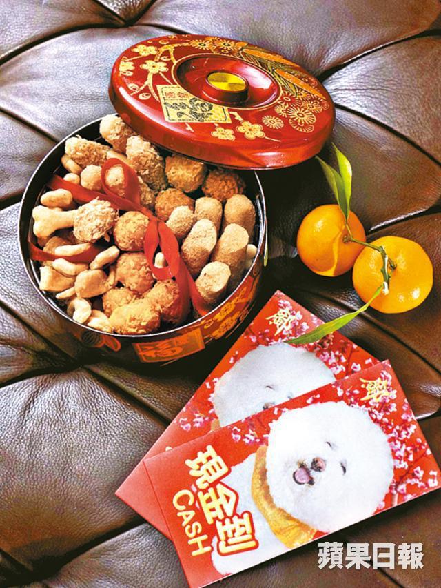 眼前的鄺美雲(Cally)穿上唐裝新年衫、戴上翡翠頸鏈,雍容華貴,她的全盒和她同樣矜貴。「這個全盒叫做『包羅萬有』,入面有翡翠蓮子,寓意連生貴子、白玉合桃,即和合之意,很有意頭。」全盒的食物造型栩栩如生,造工亦相當精緻,好像有黑玉瓜子、黃玉腰果,驟看真以為是吃得的食物。據知全盒內全都是天然玉石,Cally從不同地方找來緬甸玉石,然後吩咐具經驗的師傅雕琢,單是雕工都花上近百萬,連玉石及檀木全盒總值過百萬。「這個全盒充滿欣賞價值,很多客人看到也十分喜歡,而暫時已售出兩個給內地客人。」Cally愛好翡翠玉石外,還有兩個寶貝Cash及Euro是她的至愛。「以前每到新年,我也會為牠們訂做或買新年衫,但慢慢發覺買下太多了,所以今年不買衫免得浪費,相反會為牠們準備背包作利是袋。」Cally是愛狗之人眾所周知,而她之前也曾送過狗狗全盒給兩隻愛犬。「很高興今年收到寵物店送來狗狗全盒。」狗狗全盒內全是三文魚、南瓜、燕麥製的天然寵物食物,愛犬也可吃得安心。