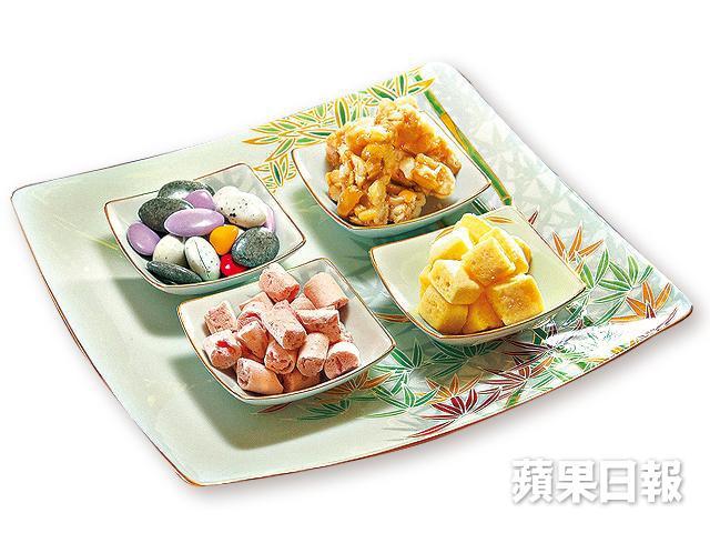 作為食物造型師的Shadow,「全盒」除了有最傳統的紅瓜子外,喜歡煮食的她,今年亦自製不少賀年小食。有用糖、蜜糖、橄欖油及開心果等做的果仁脆脆,還有放在乳酪的Topping:分別是芒果熱情果味棉花糖、朱古力及士多啤梨蛋白脆,最有趣的是色彩繽紛、像百力滋的餅乾條,有四種不同味道:西班牙乾果、乳酪、熱情果及爆炸糖,比平日吃到的更脆,更有粒粒口感。