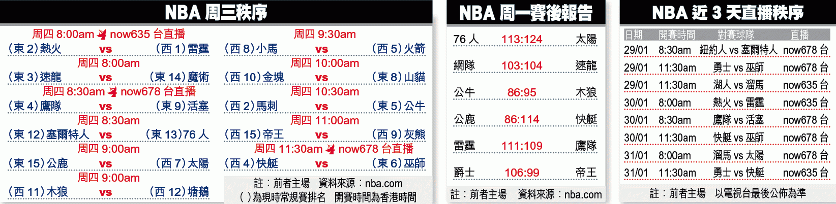 NBA賽前宣佈,KD以平均38分成為西岸每周之星,東岸每周之星則是鷹隊前鋒米爾沙;KD在1月猶如瘋狂,截至周一已累積516分,平均每場達36.9分,面對鷹隊取分仍予取予攜,半場已攻入18分,包括最後連入兩個3分波,協助雷霆追成50:57。