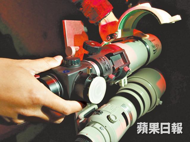 由搭起儀器到調校北極星的位置,梁威恆花了逾二十分鐘時間來完成;奇怪的是,當晚他並沒有使用天文望遠鏡協助拍攝,反之只有一支500mm長炮跟身:「平日大家見慣的三類天文望遠鏡,包括折反鏡、折射鏡和反射鏡,由於焦距特長,主要用途只是拍攝特定行星的形態,又或者月球上的細緻坑紋;至於廣闊的深空天體,單靠一支500mm已經足夠!」但他強調,任何情況下也必須結合導星鏡一齊用:「以前追星不斷靠人手調校,要捱眼瞓,累死了,自從導星鏡出現,除了令影友玩得輕鬆,也降低赤道儀產生的小誤差。等待全晚來拍攝深空天體,已經是一種樂趣。」