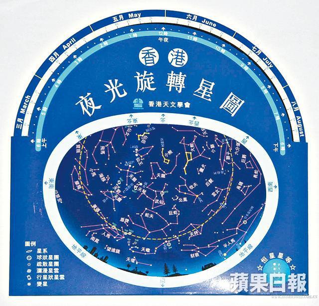 最入門又易用的觀星道具,用法是只要轉動圓形星圖往觀星的月份、日期和時間,交接位置就是當天可觀看的星體。