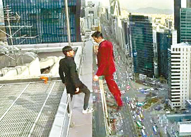 都敏俊得知千頌伊被奸角李載京(申成祿飾,右)陷害後,即時怒不可遏,即使身在警局接受檢察官調查之際,都敏俊也忍不住運用外星人瞬間轉移超能力去找載京算賬,並挾持載京上天台逼他「被跳樓」,嚇到載京半死。