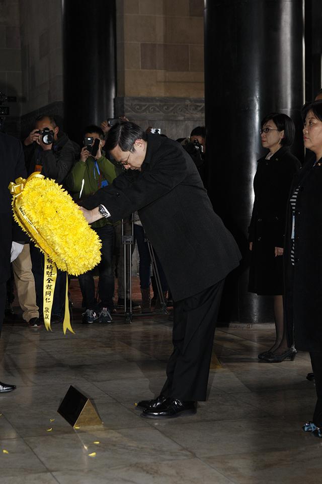 民國一百零三年二月十二日大陸委員會主任委員王郁琦率訪問團謹以鮮花之儀致祭於國父中山先生之陵曰: