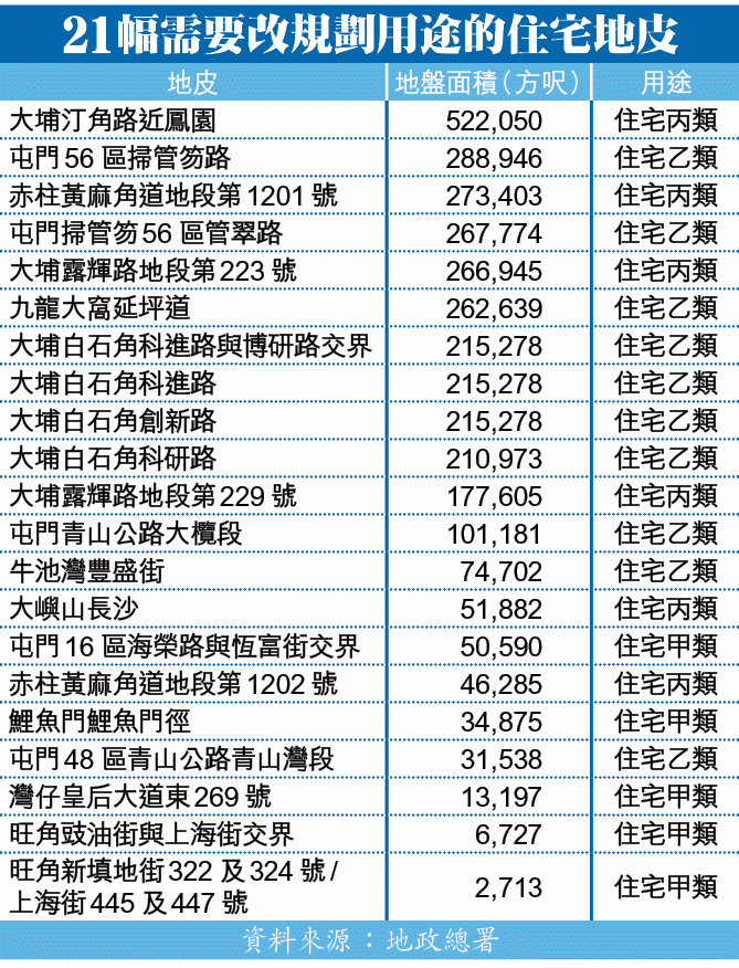 基於政府土地儲備不足,卻又「充闊佬」,要大幅增加每年度推地數量,以求盡快達到2萬建屋量的目標。就本年度原擬出售的36幅住宅地中,已有22幅是未完成城規程序,所涉及的單位量,佔36幢住宅地所能興建1.36萬伙的59%。