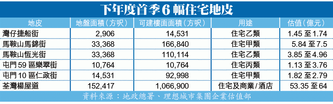 此外,除政府主動賣地外,他又稱,下年度預計會有3個鐵路上蓋項目招標;和市建局又會推出多個市區重建項目,包括預計4月招標的觀塘市中心項目在內,合共提供約9,730伙。再連同來自私人市場的供應,預計總建屋量接近3萬伙。