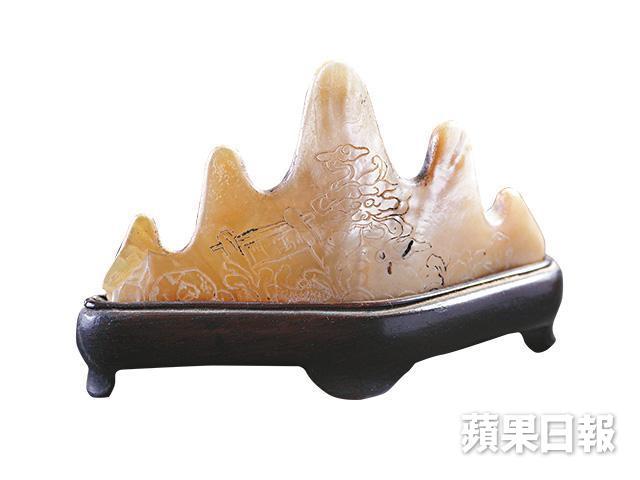 多年前,靳埭強在寧波舊貨小店發現這造型自然暢美的海貝筆山,海貝上雕有鯉躍龍門,並配上酸枝座,索價近千元,靳埭強對它愛不釋手,即使議價不成,仍買下這心頭好。
