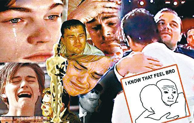 頒獎禮有人歡喜有人愁,里安納度狄卡比奧(Leonardo DiCaprio),以往兩度提名奧斯卡最佳男主角均敗北,今年再憑《華爾街狼人》第三次殺入奧斯卡爭影帝,不幸再度陪坐。昨日不少網民不知是贈興還是替他不值,個個玩改圖,有人將他拍手戥人開心的片段截成gif檔,又或綜合他多年來喊樣砌成一張圖。無獨有偶,馬修和謝勒力圖都是穿白西裝攞獎,里安納度卻以黑西裝上陣,運氣真的「黑」了點。