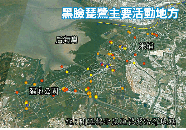 根據繫在鳥身的衞星追蹤器資料,來港的黑臉琵鷺主要在后海灣及濕地公園活動,也會在南生圍及豐樂圍等地覓食,「如果真係發展南生圍同豐樂圍,黑臉琵鷺會少咗一成嘅覓食地方,唔能夠容許呢個不能逆轉嘅情況發生」。
