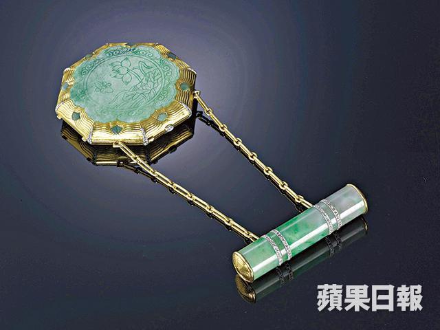 由Frederic Boucheron於1858年創辦的珠寶店Boucheron,在1893年成為首家進駐巴黎Place Vendome開設專門店的珠寶商。這個八角形黃金翡翠粉盒內有髮夾,並有鏈子連接唇膏盒,是1920年10月為客人特別訂做的。