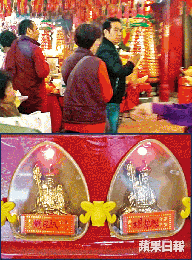 據知,當日楊家誠除了到地藏王古廟求神祈福外,亦請來喇嘛安排放生事宜。記者其後在廟內一座燈塔,發現楊家誠和兒子楊梓驄的名字,據理事長鄭吉浮表示,點燈是保家宅平安、健康等,他更強調楊是虔誠信徒,只要一有時間便來拜神,又指:「佢細細個就跟老竇阿媽嚟,信咗幾十年!」廟內一幅牆亦刻有楊家誠捐出一萬元重建城隍老爺的石刻。該廟的燈塔分三種,即佛祖聖燈、光明燈和財神燈,多是祈求身體健康和消災解厄。