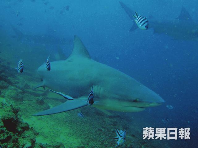 公牛鯊最為食,不停在打圈,吃完一次又一次,與電影中的大白鯊兇殘、見人就咬的情景差天共地。我與牠們只有一臂之遙,卻不能伸手觸摸,亦不能伸直手拿相機,以免被鯊魚覺得這是食物。「有潛客不守規則,被咬爛了多部相機。」