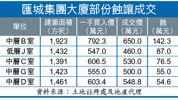 【本報訊】億京發展葵涌匯城集團大廈早前入伙,燶味四溢,兩年前付兩成首期睇到尾的投資者,結果「炒唔起、蝕住走」!本報統計該幢工廈連錄7宗蝕讓個案,最高紀錄損失逾140萬元,蝕到入肉,物業成為近年罕見的工廈蝕讓王。