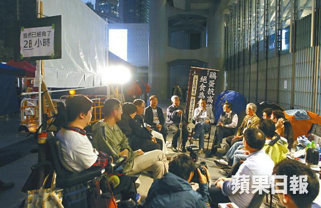 繼民主黨創黨主席李柱銘前日為民主派絕食人士打氣後,陳日君樞機昨日傍晚在和平佔中發起人朱耀明、牧師胡志偉陪同下,到滙豐總行門外出席民主普選沙龍,探望17名為爭普選而絕食的民主派人士。