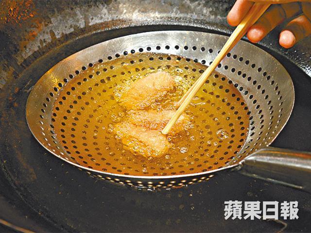 炸油先溫後猛,先用約120℃至140℃的暖油浸熟,再放入180℃至200℃的滾油炸至香脆,決定香脆度及金黃色還要取決糖的份量,不過他說這是秘方,拒絕再透露詳情。