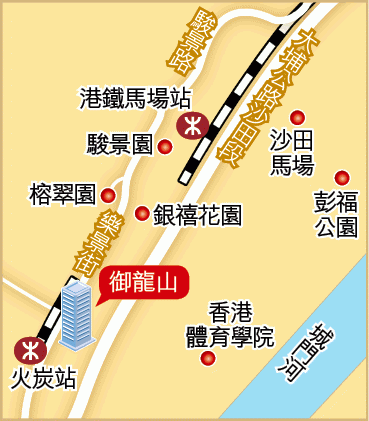 鄰近港鐵火炭站的屋苑當中,只有六年樓齡的御龍山有分層四房單位供應,全部望馬場景,但此類大戶供應不多,只分佈於1座A室以及8至10座A、B室。1座距離馬場最遠,比較之下,8至10座景觀較佳,可以欣賞遠方的馬場及城門河景致,今次介紹的9座B室,正是此類靚景大戶。