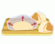 註︰如改做饅頭,可將搓好麵糰(3)放到蒸盤發酵約20分鐘,然後於滾鍋蒸10分鐘至熟