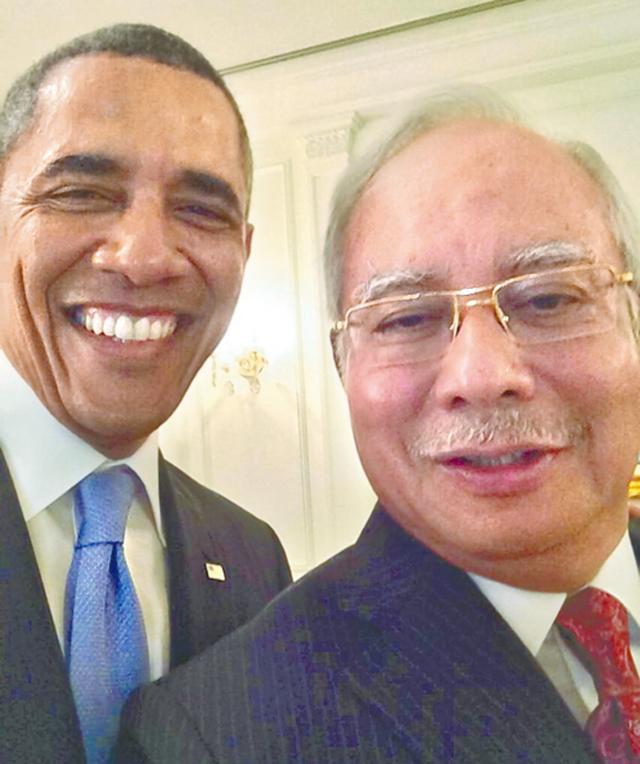 奧巴馬在南韓拒絕13歲少女泰勒(上圖)的自拍合照要求,數小時後卻與大馬首相納吉(左圖)玩自拍。