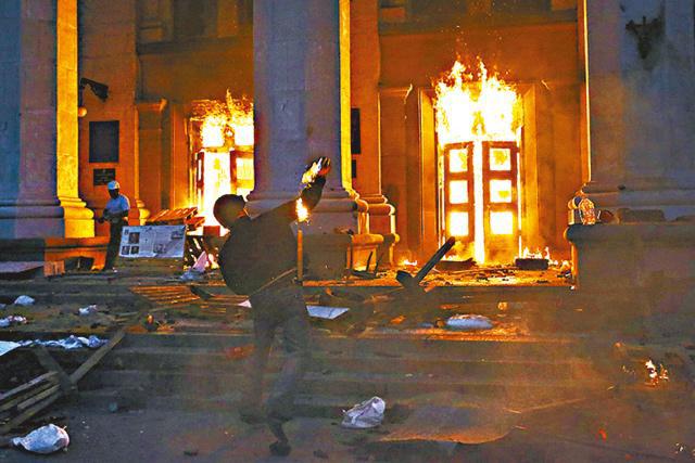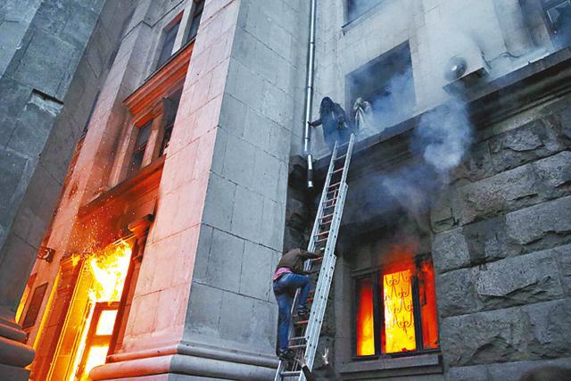 烏克蘭的暴力騷亂由東部蔓延至南部港口重鎮敖德薩,前日(周五)市中心有近1,500名親政府及數百名親俄示威者衝突,其間親俄分子衝入工會大樓,在樓頂投擲燃燒彈引發火災,造成43死、174人傷,其中25人傷勢嚴重。