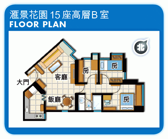 三房一廁單位實用面積分別不大,一律610餘方呎,戶型設計亦一樣,廳房窗台細,相比時下不少新樓,單位內櫳見使得多。介紹的高層樓景戶,客廳及大房向東北,飯廳有對流窗通風。其餘兩個房向西北。以景觀而言,客廳樓景較為開揚。