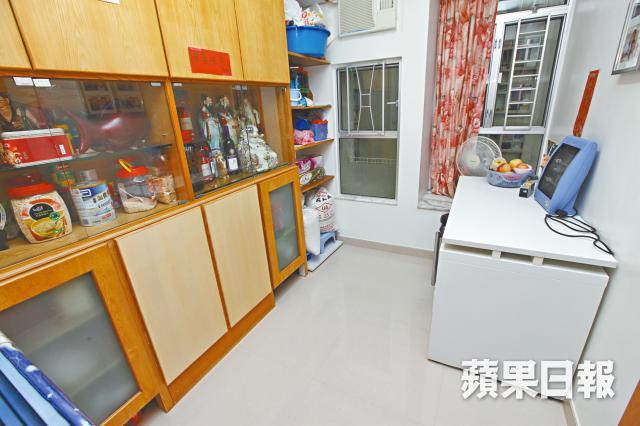 大房闊落,靠窗位置可放置約5呎雙人床。至於原有的衣櫃凹位,改為擺放地櫃及工作枱,成為小型工作間。而中型睡房則配合窗台位置闢多一個衣櫃,增加貯物空間,變相在房內多放一個衣櫃。廚房有斜角位,但通道合理。
