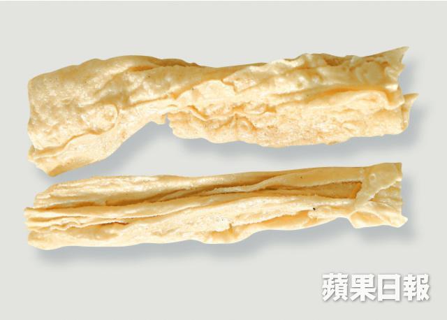 外貌上和鮮枝竹有少許相似,將鮮腐竹切成段微炸便成。