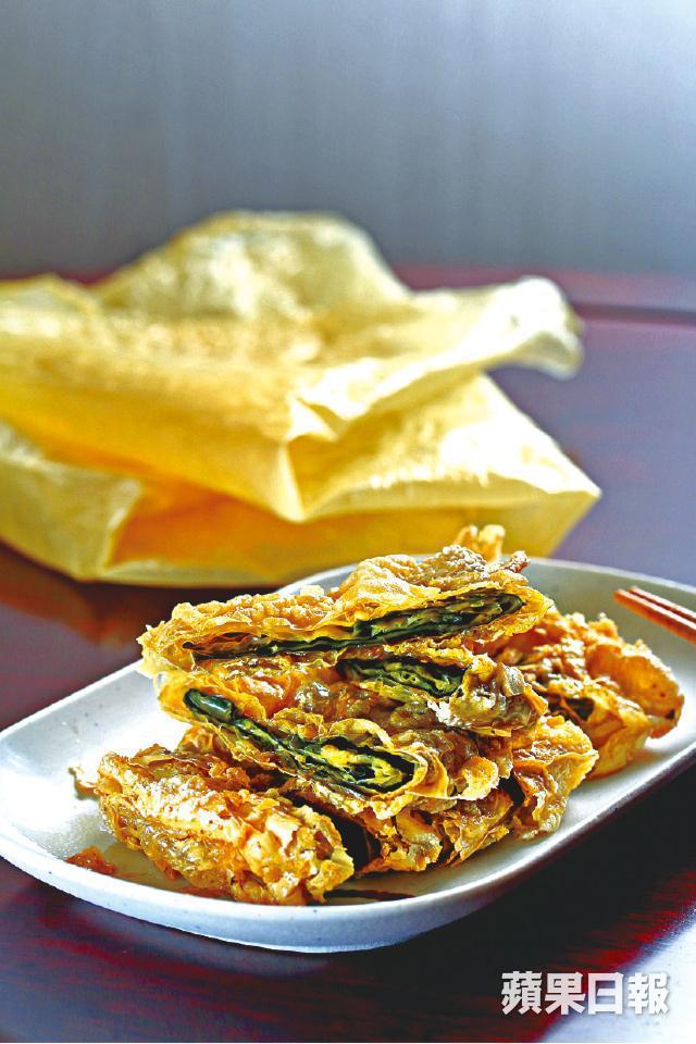西環金祥以排骨麵馳名,其實腐皮卷同樣炸得出色,老闆指十多年前開始製作紫菜卷及魚肉卷。兩款卷的外形各不相同,紫菜卷扁身,魚肉卷較圓身。一大塊圓形腐皮,可包兩條紫菜卷或四條魚肉卷,兩款卷物各有捧場客。紫菜卷的概念來自齋燒鴨,一塊腐皮捲四塊紫菜,先用高溫油大火炸一分鐘,放涼成形,食前再炸一分鐘便可上枱,一咬,腐皮酥脆甘香,少鹹而不油膩,很受素食人士及女士歡迎,食時也可蘸些陳醋。魚肉卷的製作概念來自魚肉春卷,坊間的魚肉春卷腍身多粉,金祥則選用純淨鯪魚肉加果皮碎,以低溫油炸兩分鐘,成形放涼後用大火再炸兩分鐘,食落同樣不覺油膩,魚肉香口,帶果皮香,蘸豆瓣醬更覺惹味,值得一試。