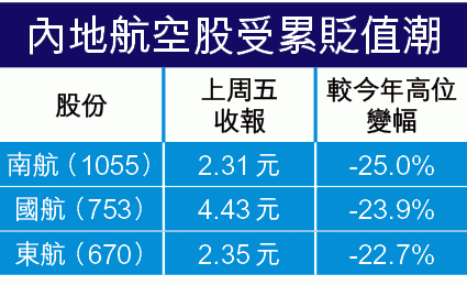 人民幣回軟的受累股,則要數那些外債較高的公司,事關非人民幣變相升值,企業債務負擔亦相應提高,當中內地航空股及紙業股可謂首當其衝。