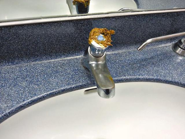 【本報訊】繼日前港大圖書館樓梯有人遺下糞便後,城市大學昨也驚現嘔心「屎跡」(圖),在一個男廁內,有3個水龍頭和門柄疑遭人抹上糞便,傳出陣陣惡臭。有人拍下「罪證」並上載至社交群組,形容事件「超恐怖」;校內學生表示不安,怒斥事件「黐線」。