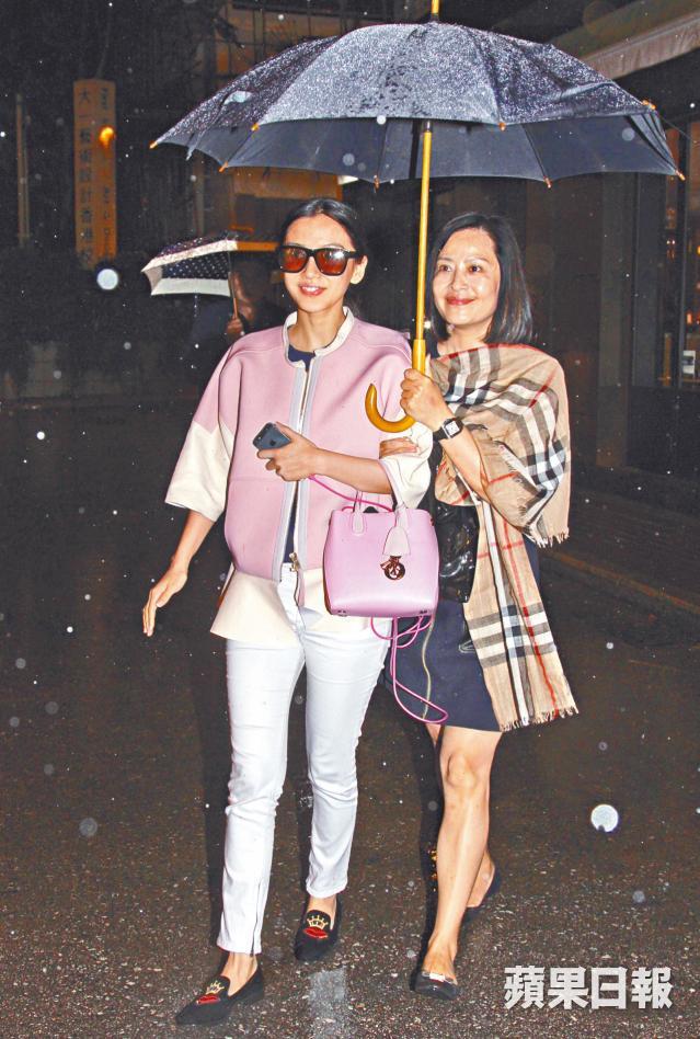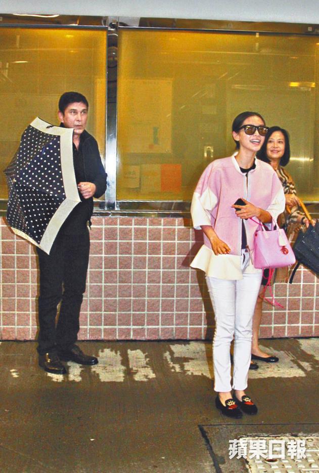 化了淡妝的Angelababy由母親擔遮行往取車,父親負責殿後。其間兩母女都保持一致笑容,Angelababy還不時提醒記者小心。臨上車前她被問到跟黃曉明是否已決定年底拉埋天窗時,她笑笑口說:「唔係。」