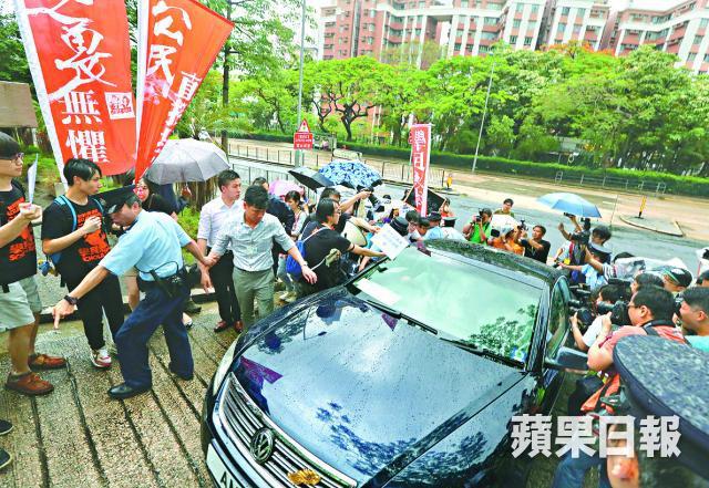 吳克儉昨日到深水埗出席一公開活動,十多名學民思潮成員冒雨在場外示威,擬向吳遞請願信,但吳克儉的座駕未有停下,在警方開路下進入會場。學民成員繼續冒雨,等吳克儉離開時再遞交請願信。